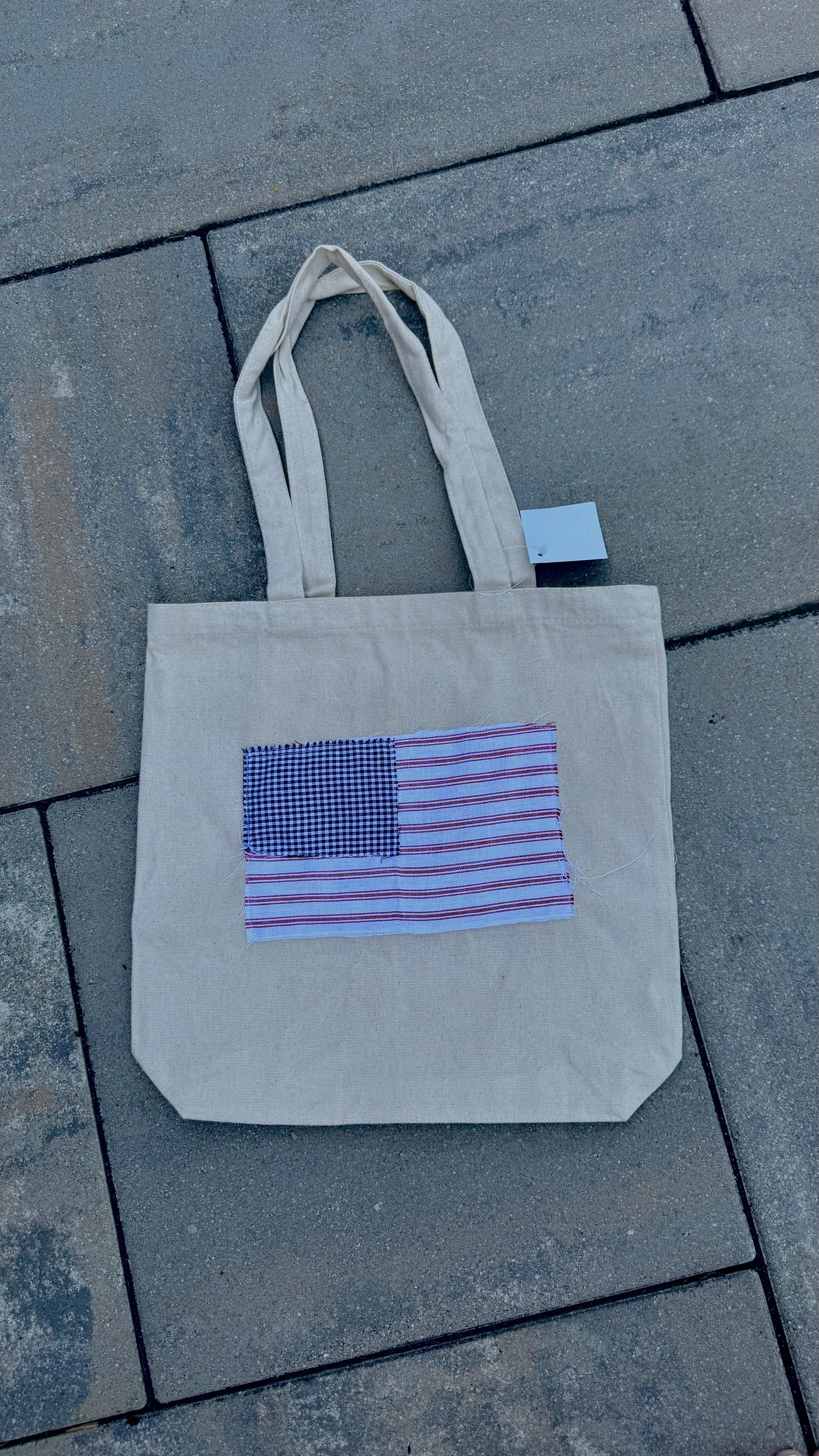 Handmade Flag Patch patched onto this natural canvas tote! Simple and perfect for this July!